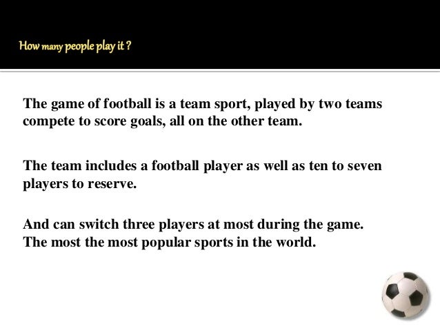 05/02/ · Essay on my favorite sport football I play lots of games like cricket, hockey, badminton, volleyball, football, tennis, etc. But my favorite game is football. It is an outdoor game. It is played between two teams. Each team has 11 players, there is one referee. The football game is played for 90 minutes in two phases 16/07/ · Ans: Your Favourite Sport. My favourite sport is football. I like it very much. It is quite cheap and inexpensive. We need only a football and a piece of land. It is played between two teams of eleven members each. The game is played with feet. Head is also used but it is foul to touch the ball with hand. Of course, if the ball goes out of the field a player can use his 27/11/ · MY FAVOURITE SPORT My favourite sport is tennis. Tennis is a sport in what each player uses a racket that is strung to strike a hollow rubber ball covered with felt over a net into the opponent's court. I started playing tennis when I was 8 years old because my parents enrolled me in a course